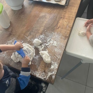 Kneten fördert die Feinmotorik und die Kreativität. Die Knete stellen wir selbst her.